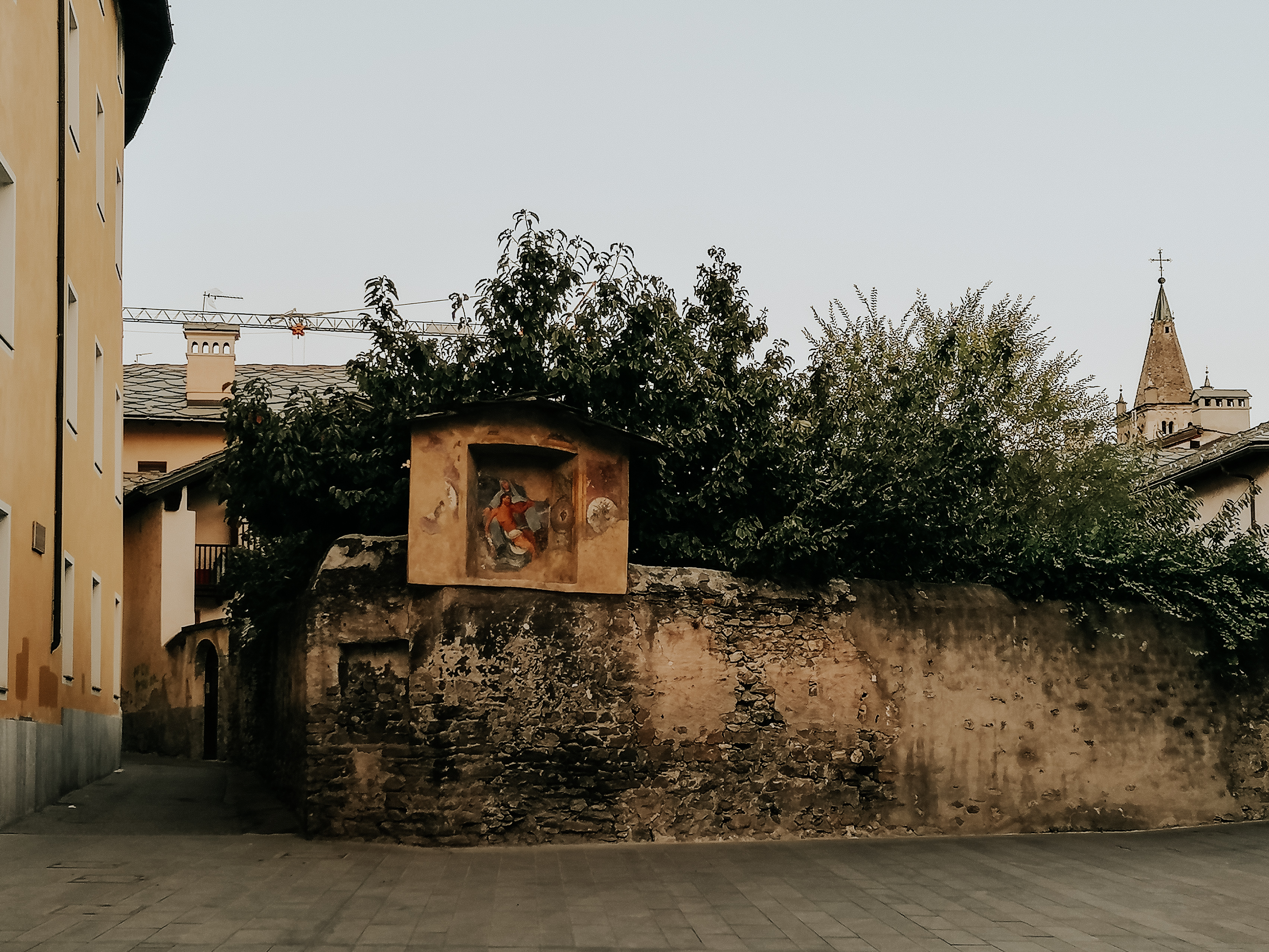 Aosta ha ragazze dipinte sulle case, e trompe l’œil, e madonne.